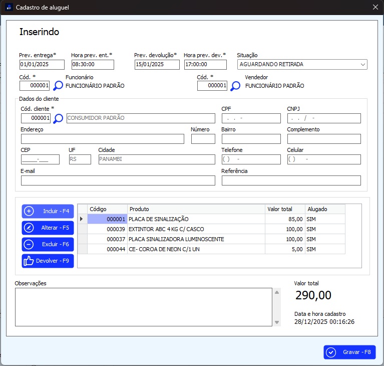 Módulo para operações de aluguel e contratos.