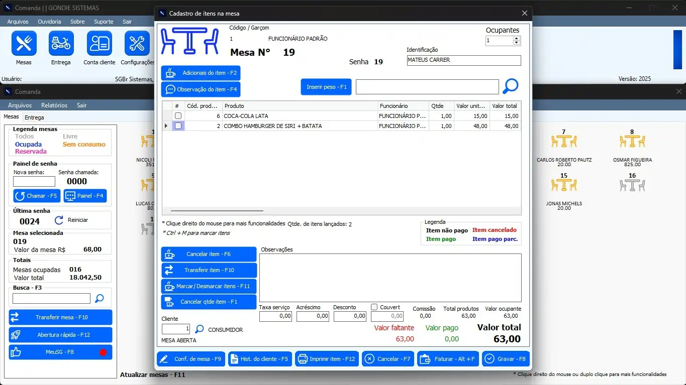 - Controle de mesas, retiradas e entregas