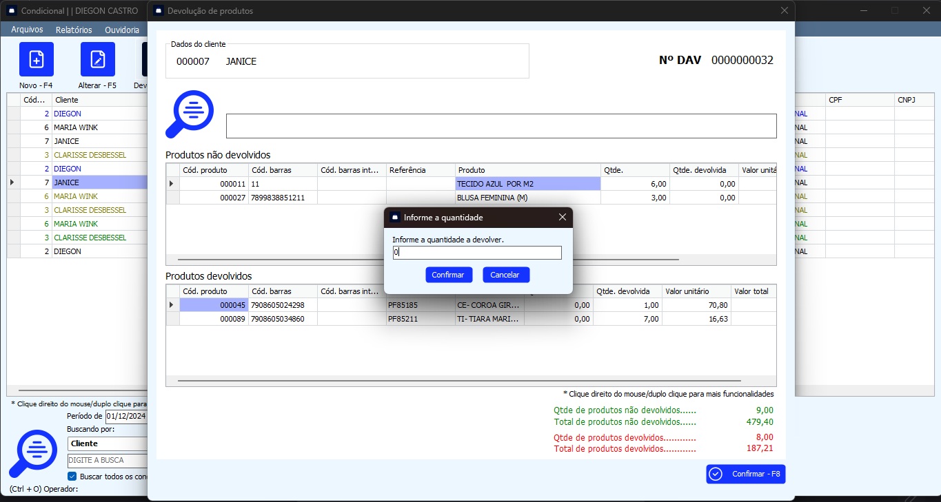 Possibilidade de incluir, alterar, devolver, trocar ou excluir.
