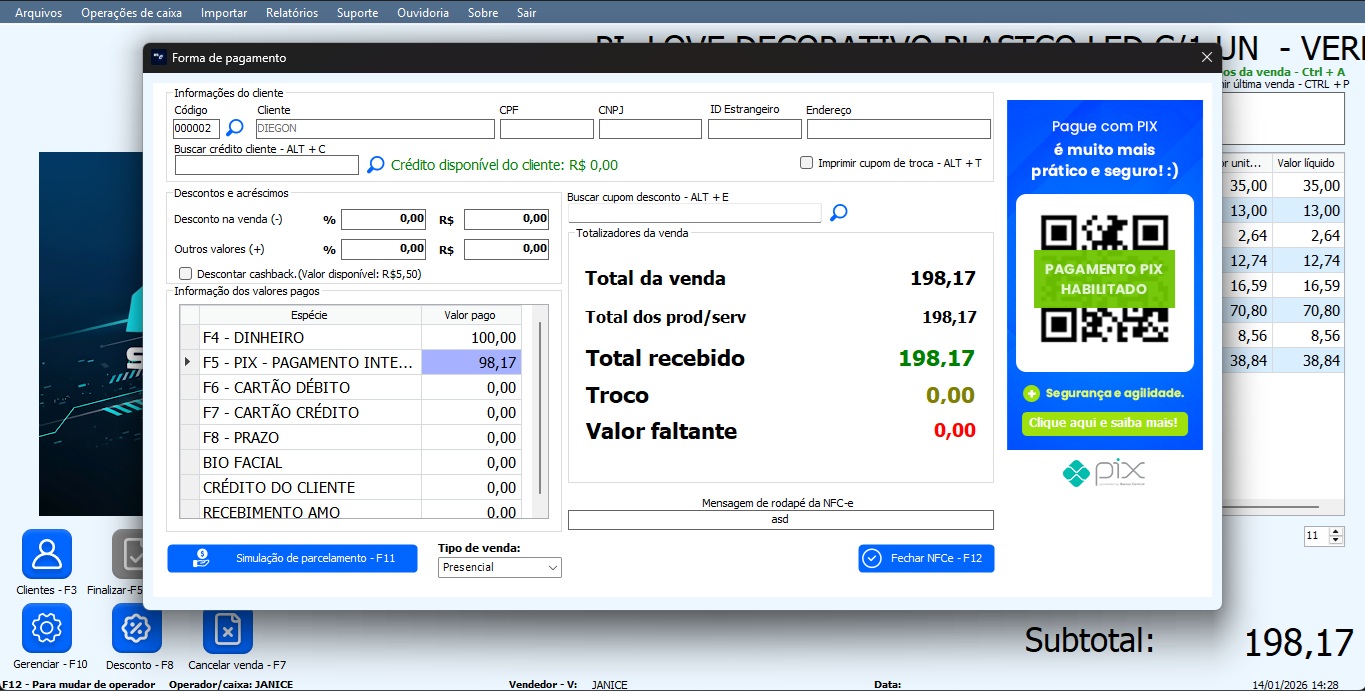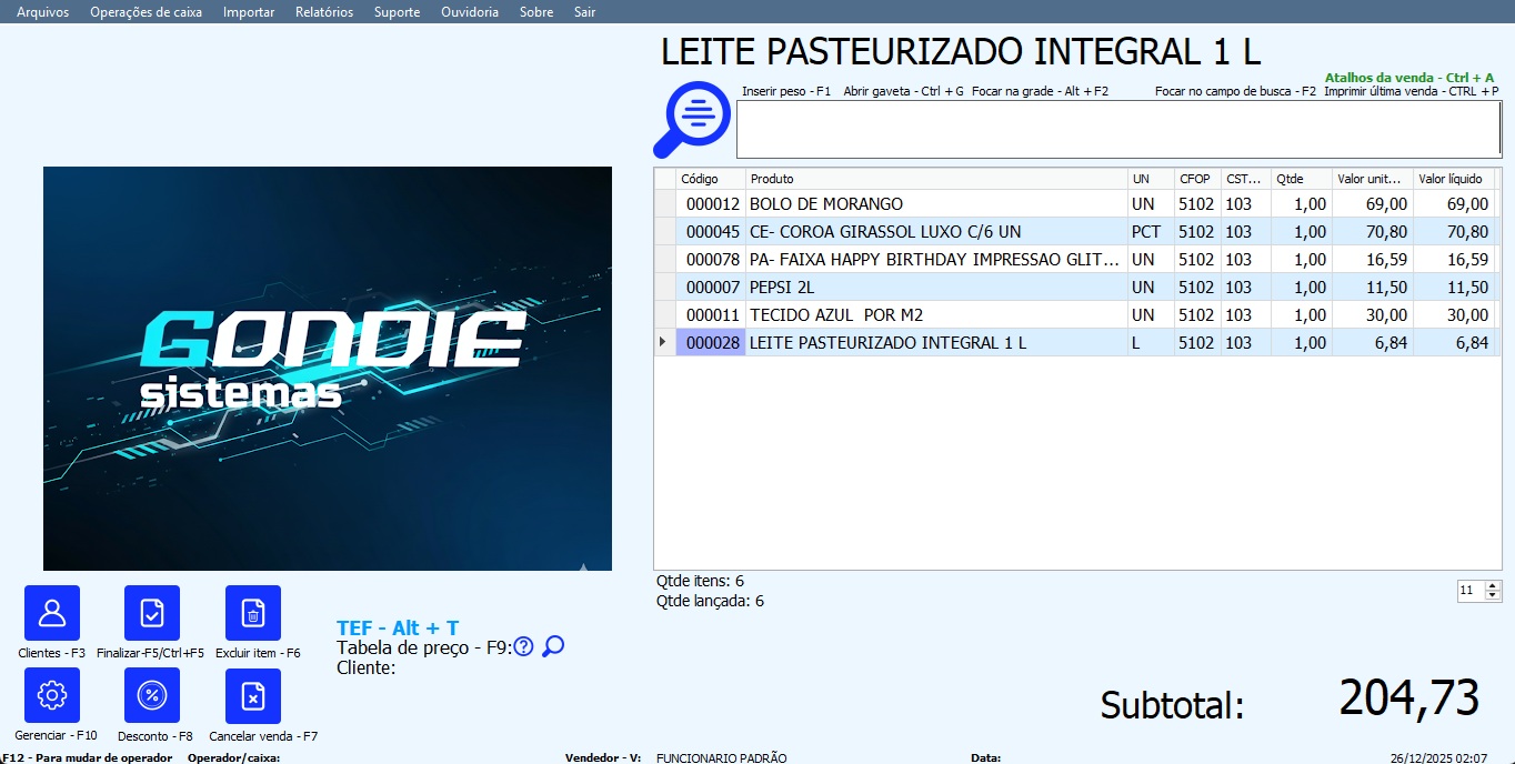 Descrição de algumas funções do pdv: